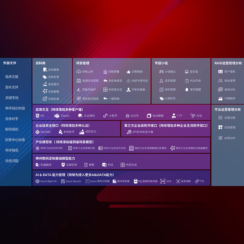 医疗器械产品上市前,,,,要熟悉严格与繁复评审标准,,,,整理分析监管机构指导文件中的海量信息。。。。企业急需一个智能化解决方案,,,提升知识管理效率,,,,提高评审通过率,,以提升其市场竞争力。。。。